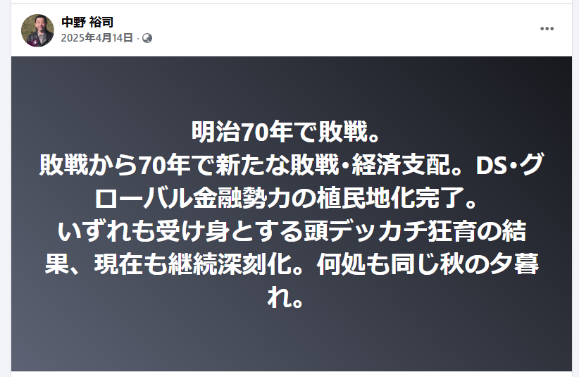 この点では、明治70年の敗戦よりも頭デッカチ病は重篤化しているといえる。