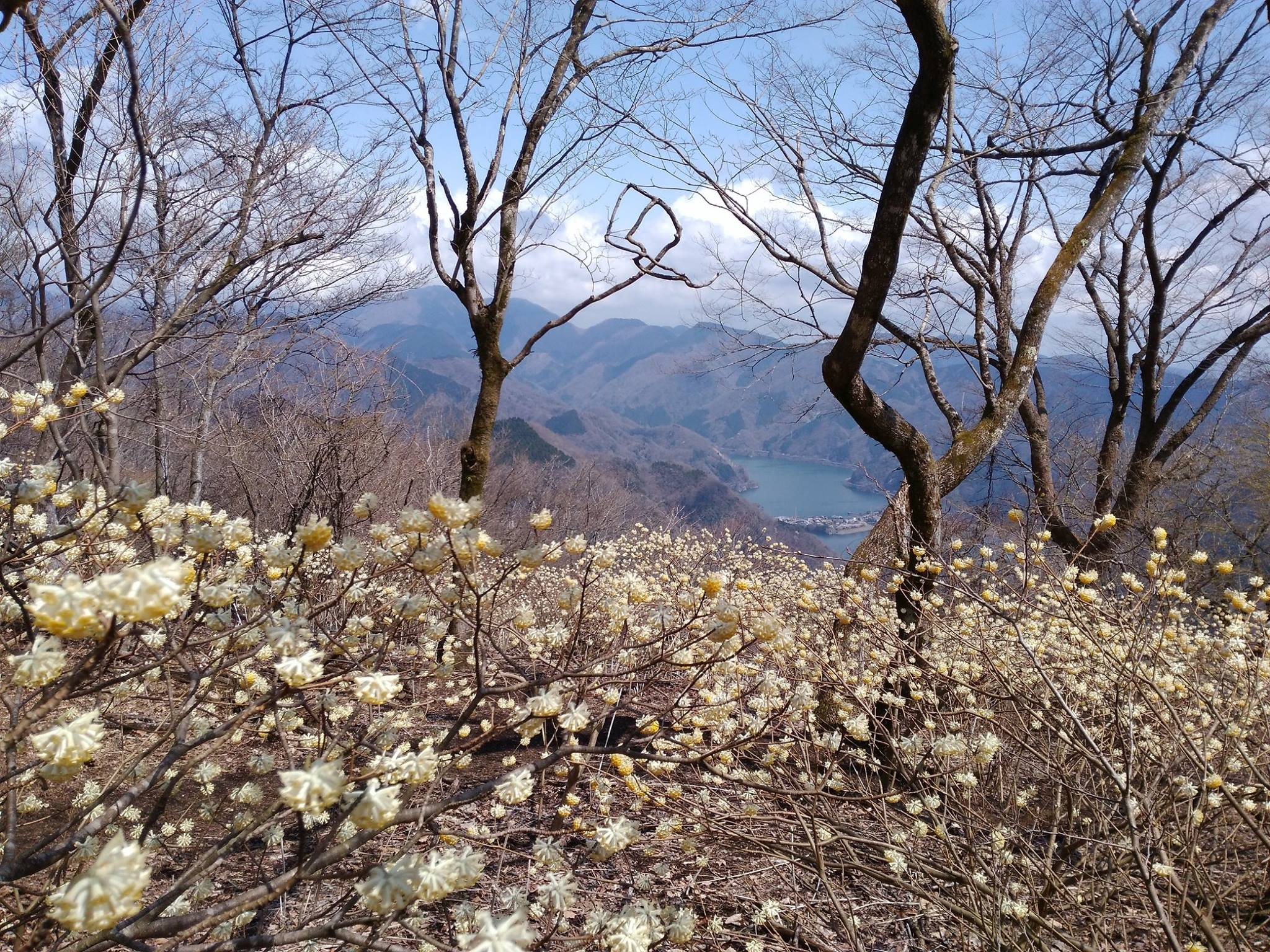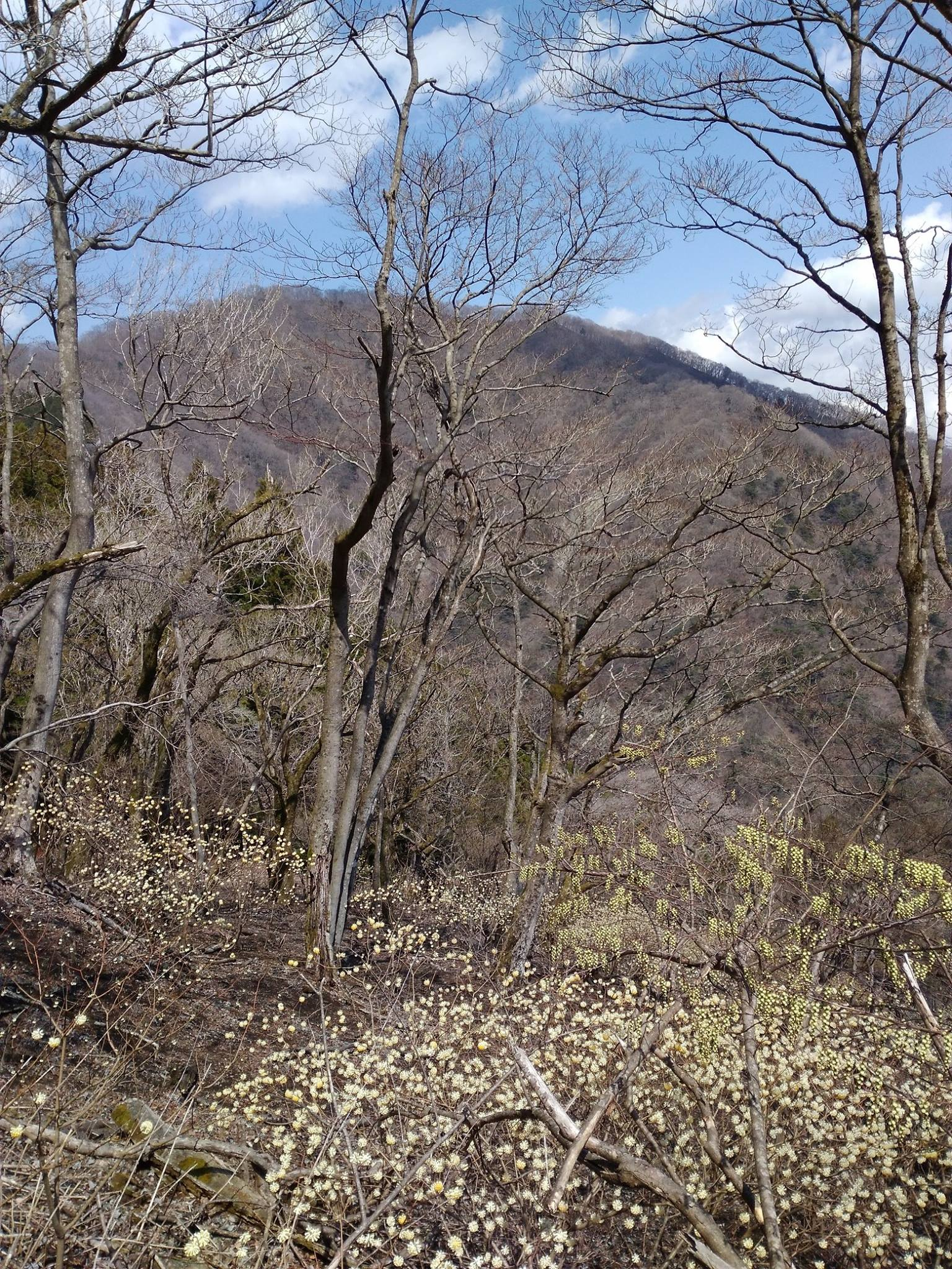 ミツマタの群落のところでは、お日様が雲の中から出てくれました。