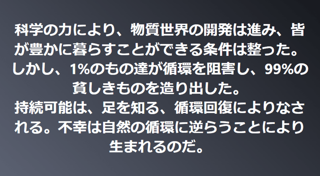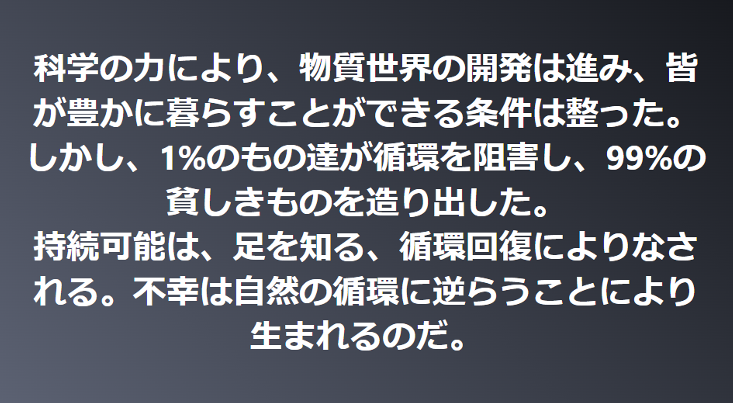逆に、循環に逆らうならば、様々な問題を発生させることとなってしまいます。