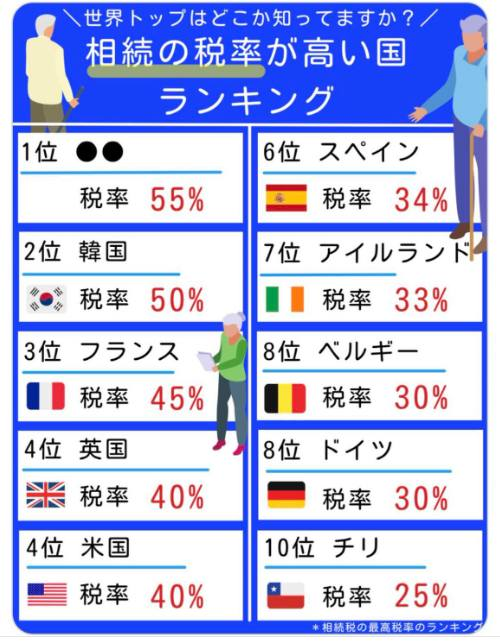 米進駐軍に制圧し続けられている日韓がダントツに相続税が高いのは面白いですね。